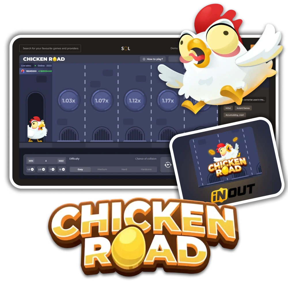 Chicken Road is a simple crash-style game where you bet on a chicken crossing the road and try to cash out before the round ends. At SOL Casino, new Canadian players get a 100% welcome bonus plus up to 500 free spins, and up to 100 free spins on reloads. The site holds a valid gaming licence and supports Canada-friendly payment options like Interac, Visa, Mastercard, MuchBetter, and popular e-wallets.
